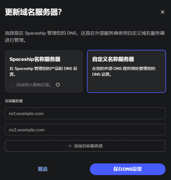 Spaceship疑难杂问大全,登录、续费、Dns名称服务器更改的教程来了。